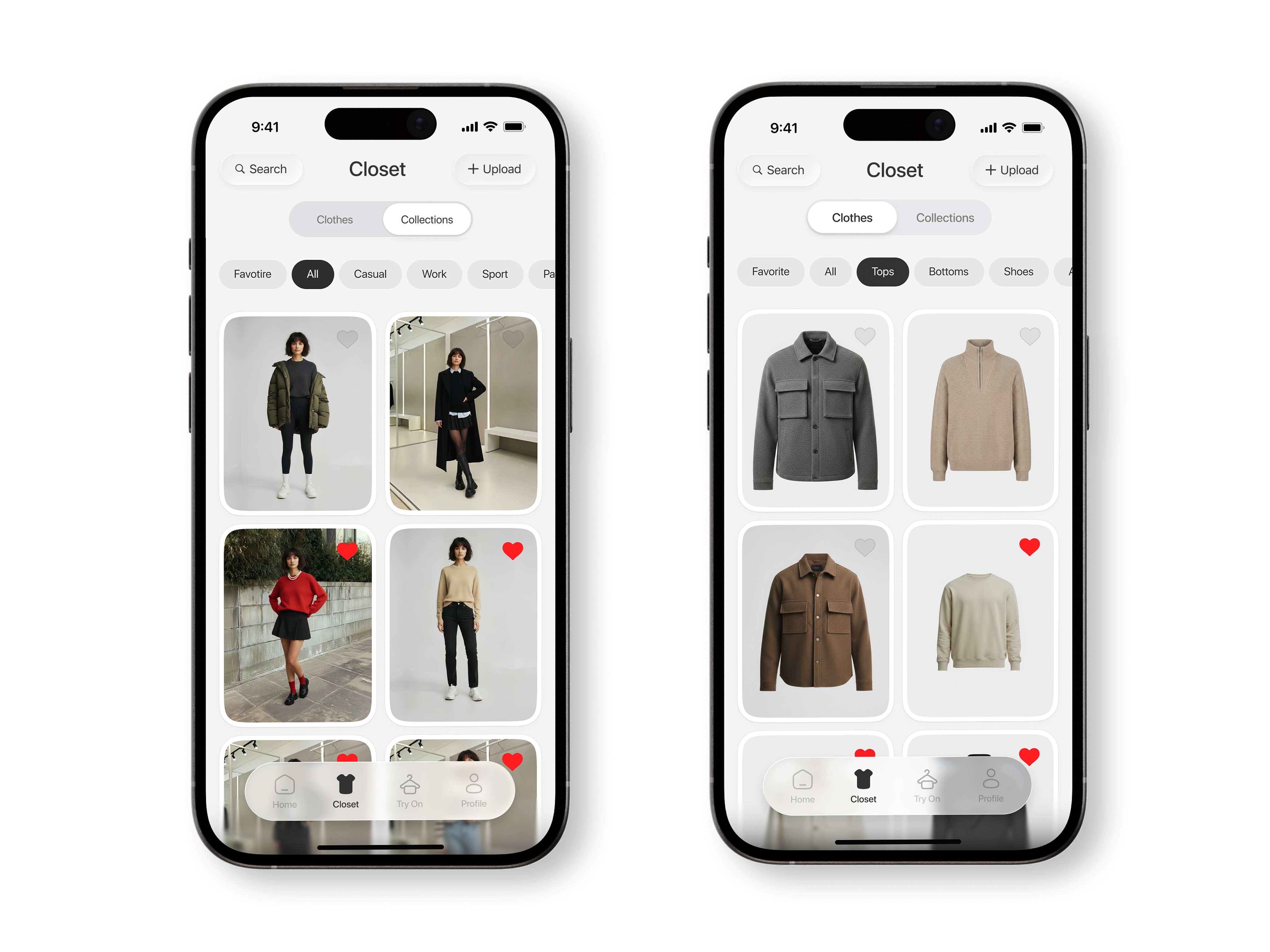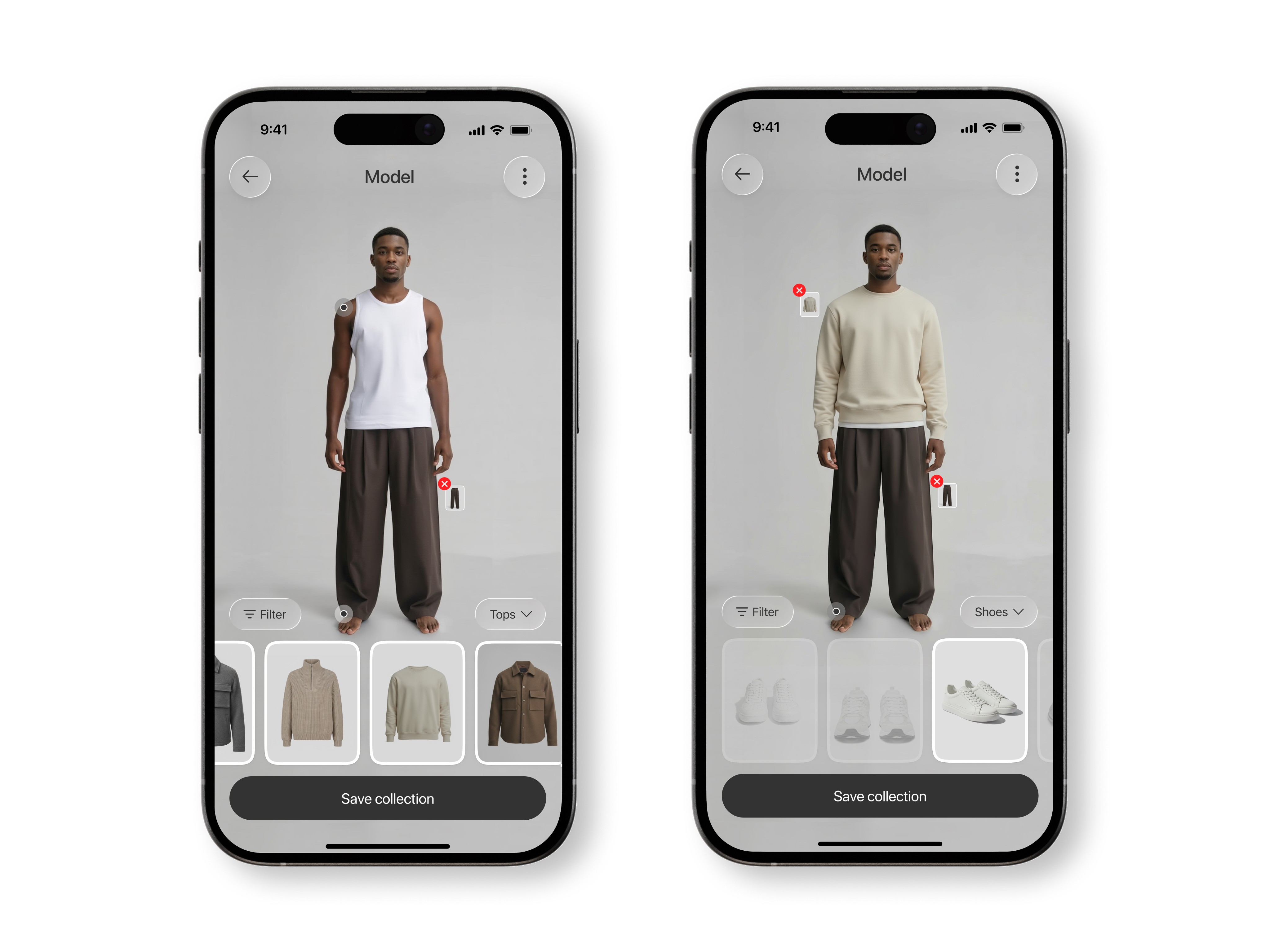 В процессе были проработаны основные сценарии: создание AI-модели пользователя, добавление одежды в гардероб, примерка и сохранение образов. Старался сделать так, чтобы все основные действия выполнялись быстро и без лишних шагов. Параллельно собирал визуальный стиль и анимации.