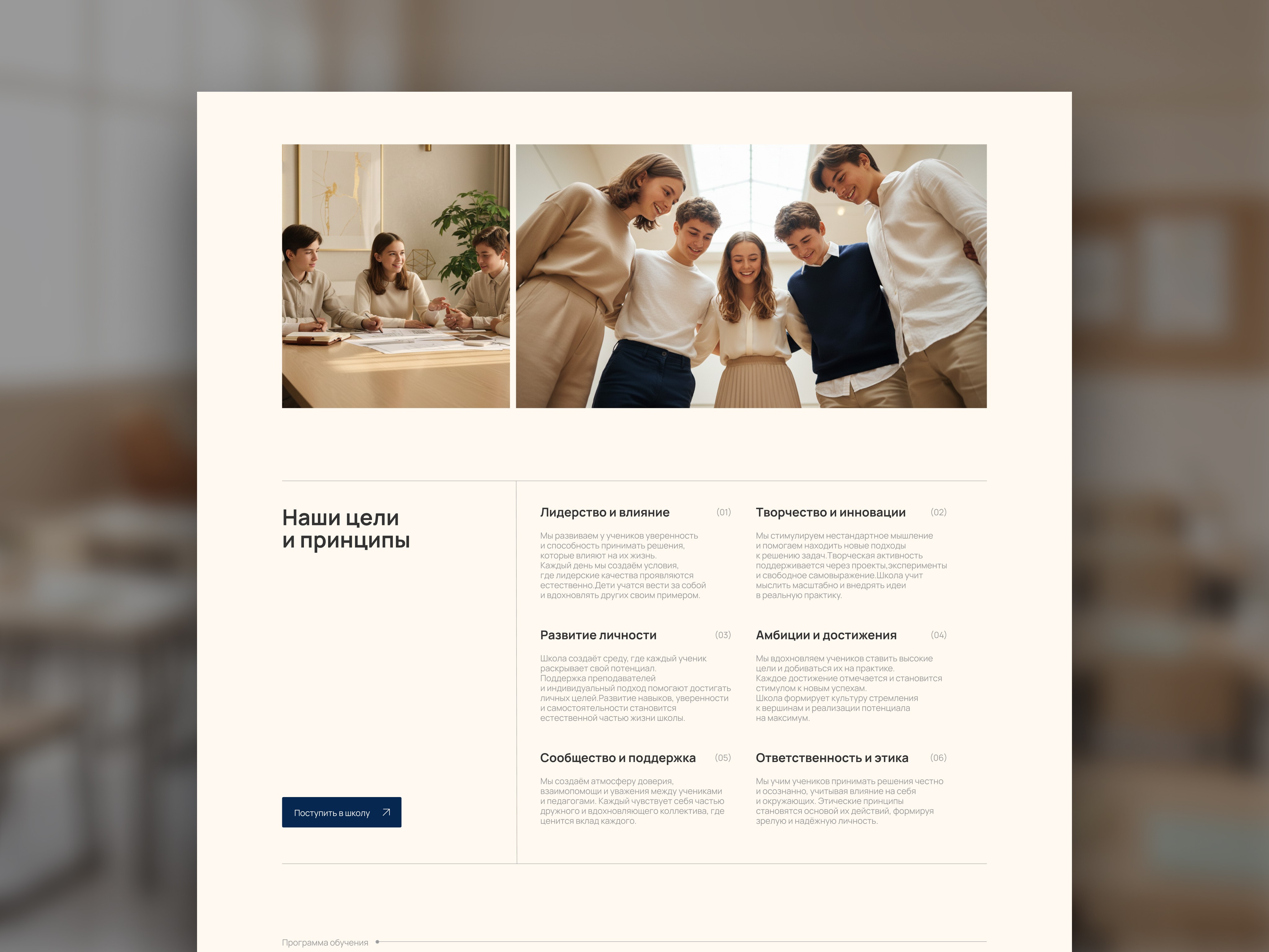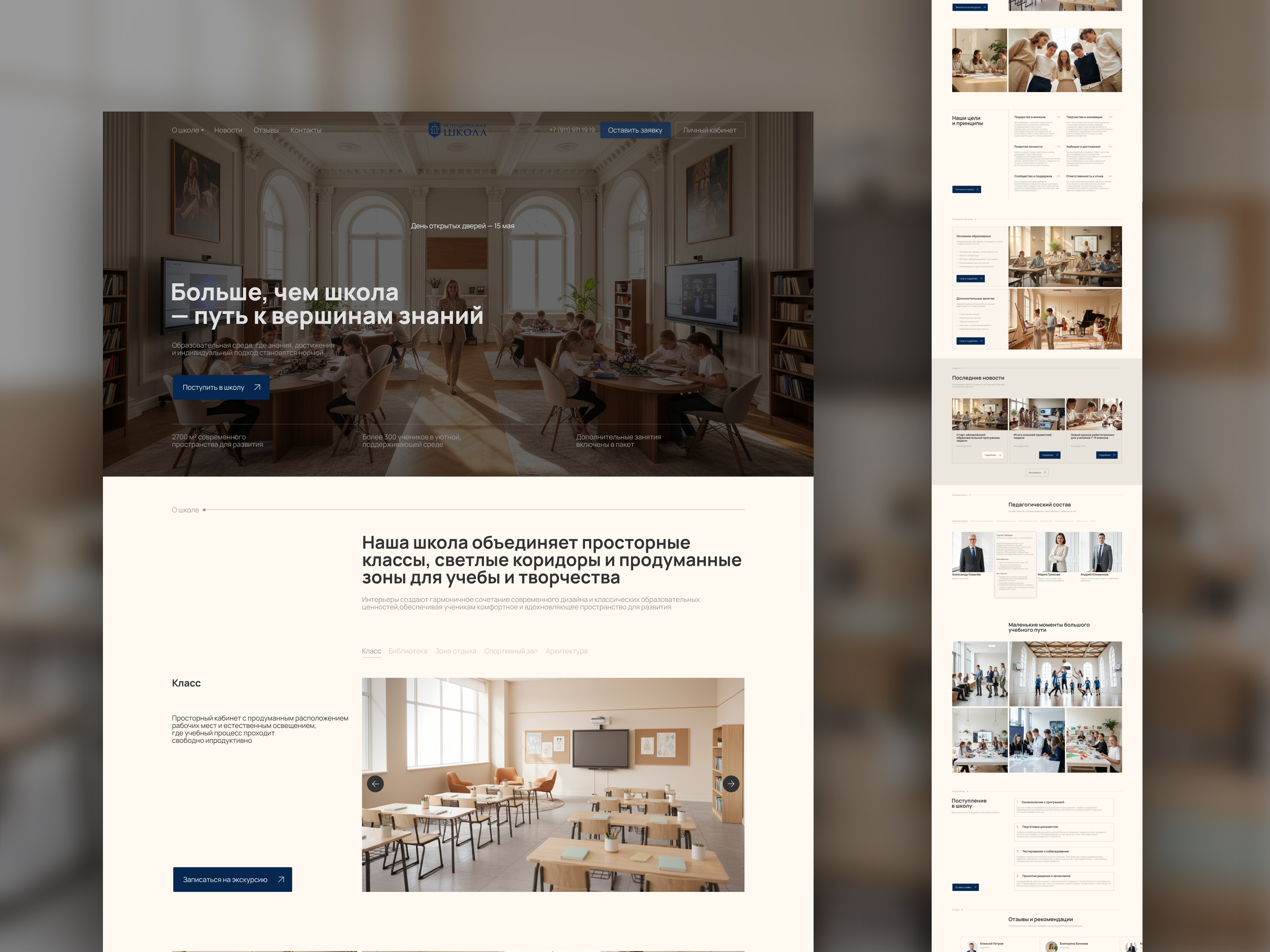 Нужно было спроектировать сайт для частной школы: главную страницу со всеми основными разделами и личный кабинет для учеников и родителей. Важно было сделать структуру понятной и удобной для людей без «технического» опыта.