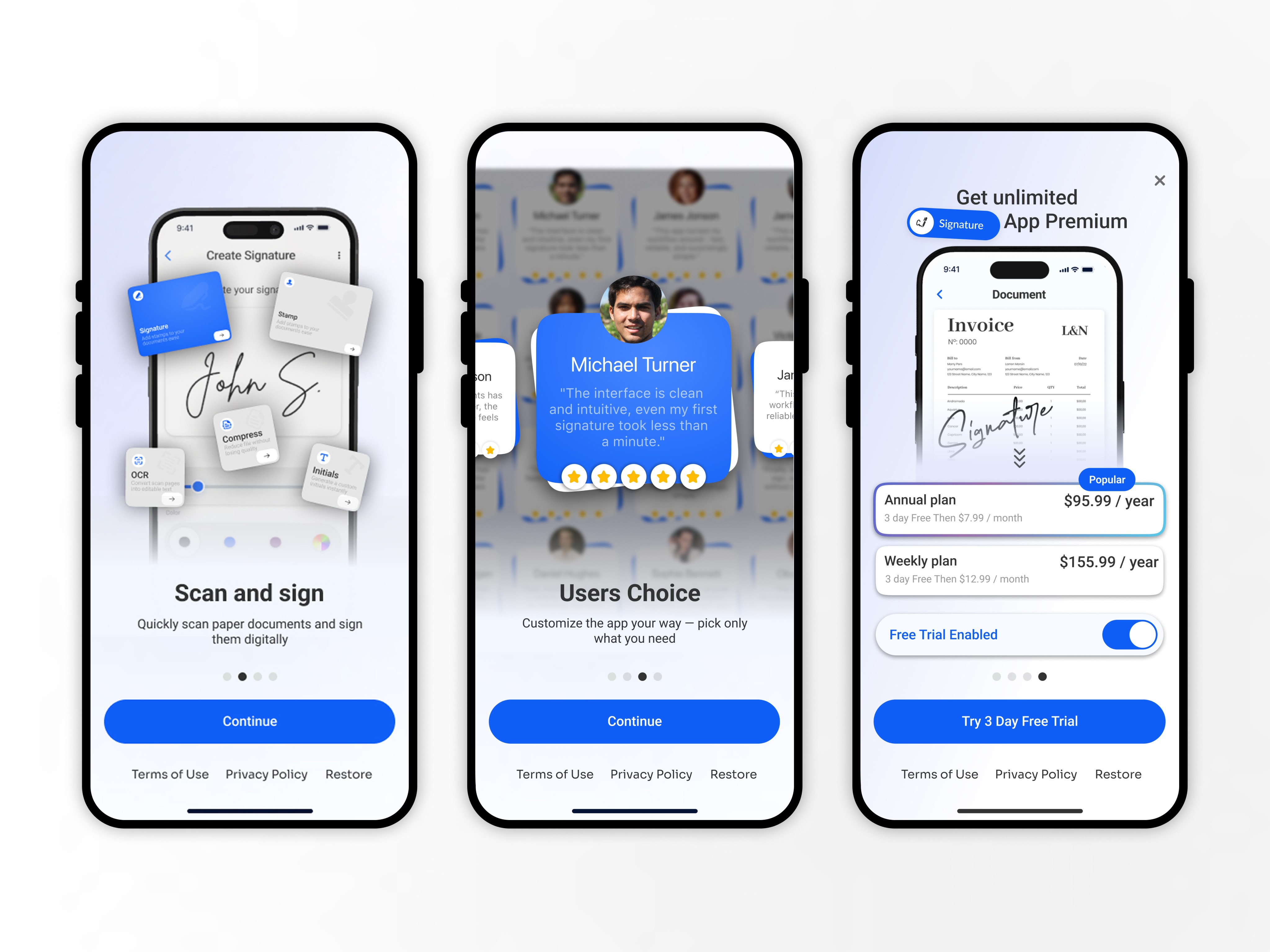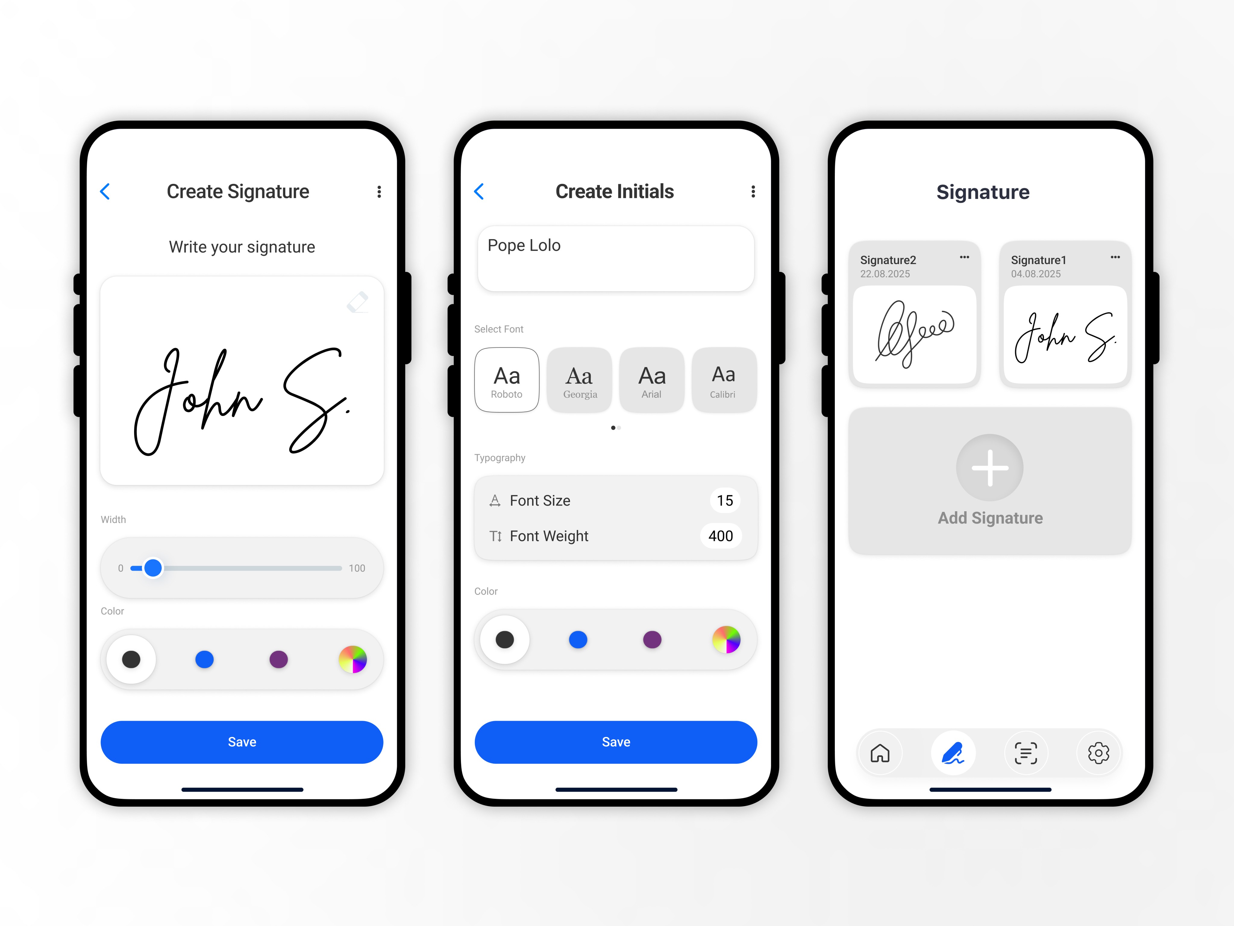 Мобильное приложение для создания, добавления и редактирования подписей в документах, со сканированием и обработкой файлов.